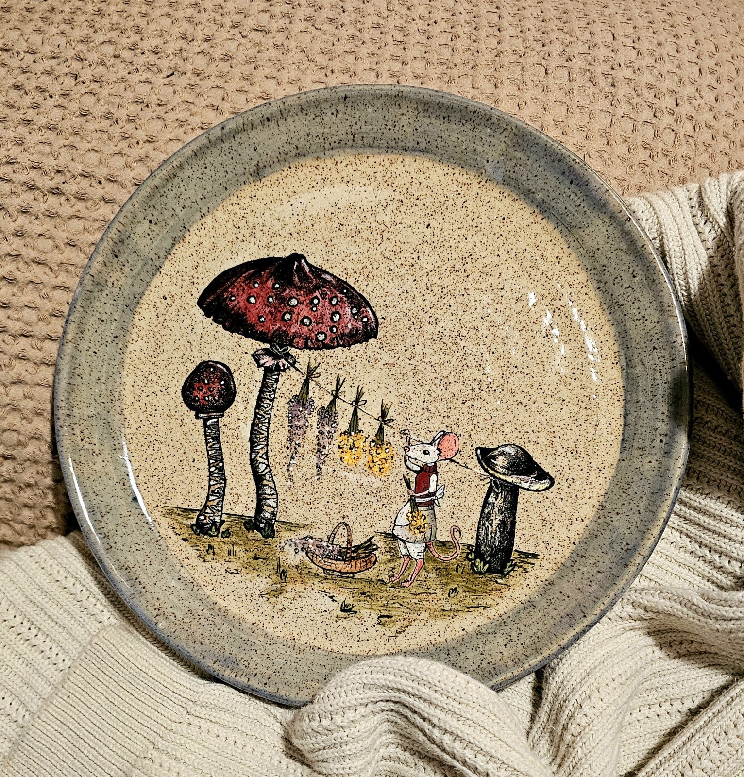 Note: Unfortunately the plate warped slightly during it's final firing. It doesn't sit flat, it wobbles a little bit.